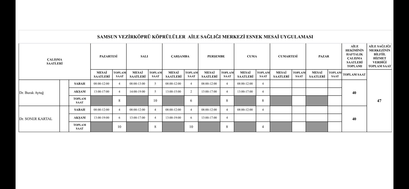 Çalışma Saatlerimiz